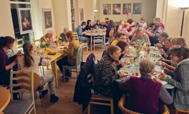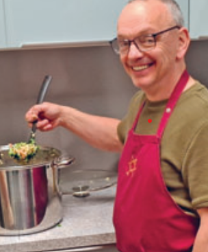 Der kulinarisch-informative Abend „Jüdisch kochen“ am 6. Februar im MITTENDRIN war mit mehr als 30 Personen schnell ausgebucht – und zeigte eindrucksvoll, wie groß das Interesse an Begegnung, Austausch und gemeinsamen Tun ist. Eingebettet war die Veranstaltung in das Jahr der jüdischen Kultur in Sachsen und das Gedenken an die Opfer des Nationalsozialismus. Mit Ralf Tröger, Küchenchef des jüdischen Restaurants „Schalom“ in Chemnitz und gebürtiger Zwönitzer, hatte der Verein Zwönitz Miteinander e. V. einen Koch eingeladen, der sich schnell als ebenso nahbar wie leidenschaftlich und humorvoll erwies. Er ist selbst kein Jude und kam eher zufällig zum Restaurant „Schalom“. In Zwönitz aufgewachsen und zur Schule gegangen, zog es ihn der Liebe wegen nach Chemnitz – und schließlich in die jüdische Küche, die für ihn heute weit mehr ist als seine Arbeit. Ralf erläuterte einige Grundregeln der koscheren Küche, z. B. dass Milchiges und Fleischiges nicht in einer Mahlzeit vermischt werden dürfen, weshalb im „Schalom“ und an dem Abend auch im MITTENDRIN keine tierischen Milchprodukte genutzt wurden. Gemeinsam wurden Falafel und Tabouleh, Tscholent mit Hähnchen, Graupen und weißen Riesenbohnen sowie Panna Cotta mit Granatapfelsoße zubereitet – und bei der Arbeit kam man ganz selbstverständlich ins Gespräch. Die Küche war rappelvoll, viele schauten Ralf am Herd über die Schulter, fachsimpelten über Gewürze, rührten Bulgur und den Eintopf, rollten und frittierten Falafel. Geschnippelt wurde an allen Tischen und verschiedene Techniken zum Entkernen von Granatäpfeln kamen zum Einsatz. Jede und jeder suchte sich eine Aufgabe, half mit oder unterhielt sich mit anderen bei einem Glas Wein oder koscherem Simcha-Bier. Bald zogen Düfte von exotischen Gewürzen durchs MITTENDRIN und machten Appetit. Das gemeinsame Essen, der Genuss der selbstgekochten Speisen, war natürlich der Höhepunkt des Abends. Dass nach Sonnenuntergang der Shabbat begann, der festliche Ruhetag in der jüdischen Kultur, verstärkte die besondere Atmosphäre. „Es war sehr schön, lecker, harmonisch, gesellig, trubelig – und viel weniger chaotisch als erwartet“, fasste das Team des MITTENDRIN den Abend zusammen. Viele der Teilnehmenden bedankten sich am Ende ausdrücklich – für das Essen, den Einblick in eine andere Kultur, aber vor allem für die Atmosphäre. Der Abend zeigte, worum es bei unserer Veranstaltungsreihe Blick über den Tellerrand geht: nicht um perfekte Abläufe, sondern um gemeinsames Tun, Zuhören, Erinnern und Genießen. Möglich werden diese Veranstaltungen durch Fördermittel des Programms Neulandgewinner. Dass auch der für den Herbst vorgesehene Wiederholungstermin „Jüdisch kochen“ schon ausgebucht ist und konkrete Pläne für weitere Themenabende geschmiedet werden, bestätigt: Dieses Format trifft einen Nerv.